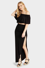 Black side split maxi skirt
