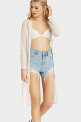 Cream mesh kimono duster
