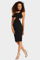 Black choker sleeve midi dress