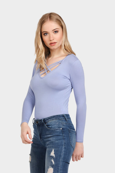 China-blue cross front bodysuit