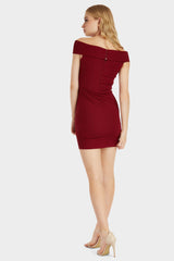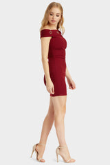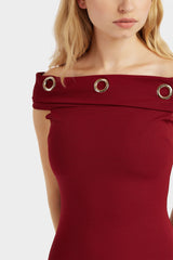 Red eyelet off the shoulder mini dress