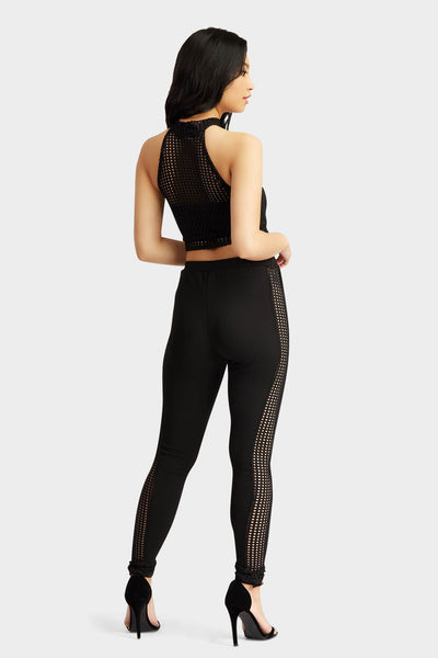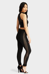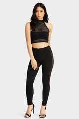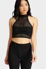 Black jumbo fishnet high neck sleeveless crop top