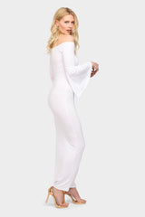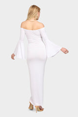 Cream off shoulder bell sleeve maxi dress