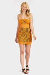 Orange strappy crochet bustier bodycon mini dress