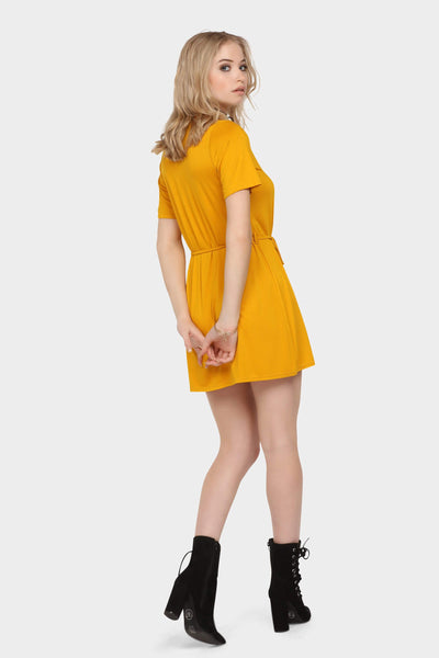 Ocre tie waist wrap mini dress