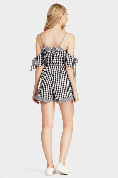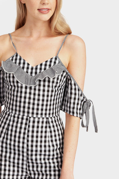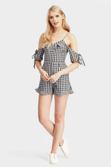 Black gingham cold shoulder playsuit